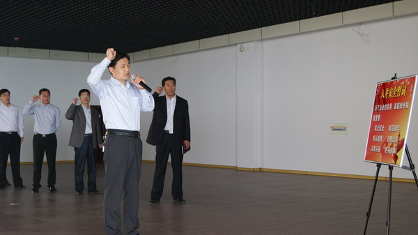 会上,韦连波带领全矿职工进行了安全宣誓:“牢记安全、规范作业,听从指挥、文明上岗,自保互保、绝不违章。”