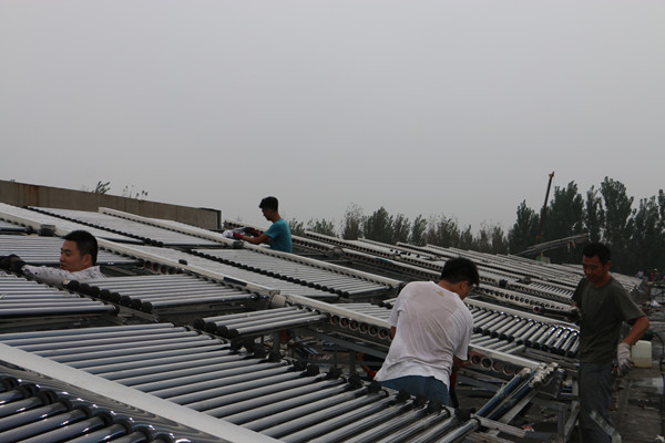 至8月22日,共安装太阳能集热管13000根,配套底座支架1300平方米。