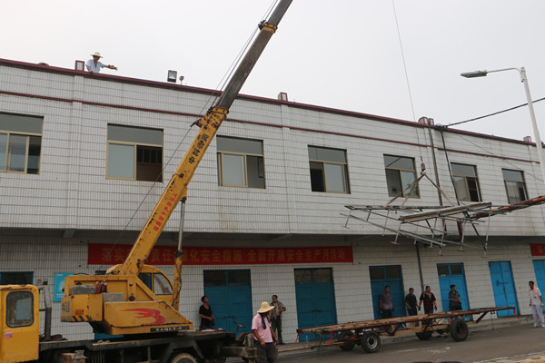 欢城煤矿机厂、机电工区组织人员,从8月6号开始,有计划的对太阳能集热管和配套底座进行集中折卸、切割解体、运输安装。时值立秋后的第二天,“秋老虎”发威肆虐,爬上楼顶就像进入了烤箱一样。楼顶太阳能底座间空间狭小,不易操作,有时一个动作要保持十多分钟。持续的高温,让人喘不过气来,汗水一会儿便湿透了衣裳。为按时完成任务,矿将工作时间调整到早5:30—10;30 和17;00—22;30两个时段进行,同时准备了西瓜和冰镇矿泉水,消暑降温。