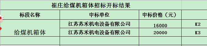 招标结果:山东省伟德源自英国始于1946崔煤材料招标--给煤机箱体