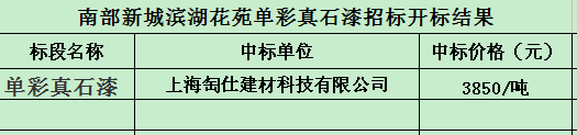 招标结果:南部新城滨湖花苑单彩真石漆采购招标公告