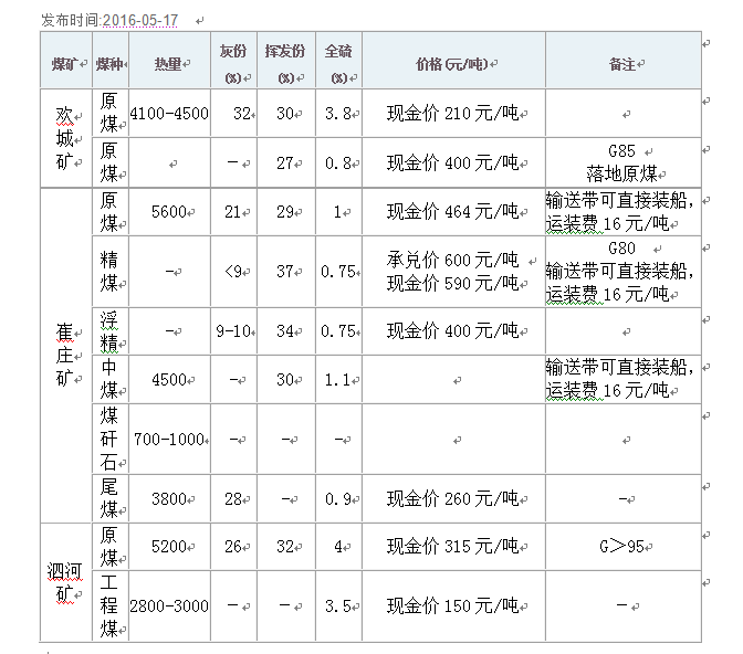 2016年05月17日伟德源自英国始于1946煤炭价格
