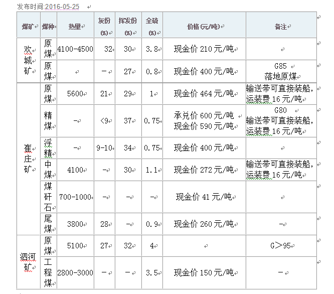 2016年05月25日伟德源自英国始于1946煤炭价格