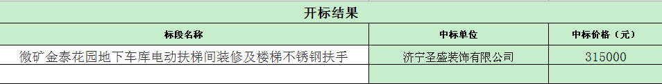 招标结果:伟德源自英国始于1946金泰花园地下车库电动扶梯间装修及楼梯不锈钢扶手