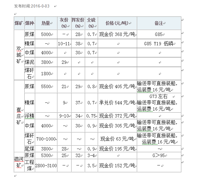 2016年08月2日伟德源自英国始于1946煤炭价格