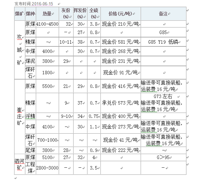 2016年06月15日伟德源自英国始于1946煤炭价格