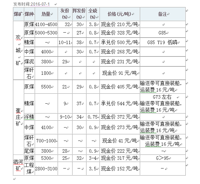 2016年06月30日伟德源自英国始于1946煤炭价格