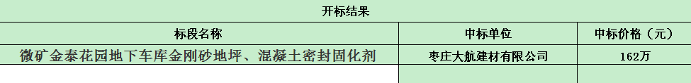 招标结果:伟德源自英国始于1946金泰花园地下车库金刚砂地坪、混凝土密封固化剂