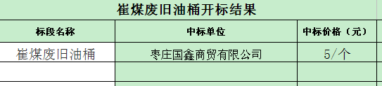 招标结果:崔庄煤矿废旧油桶