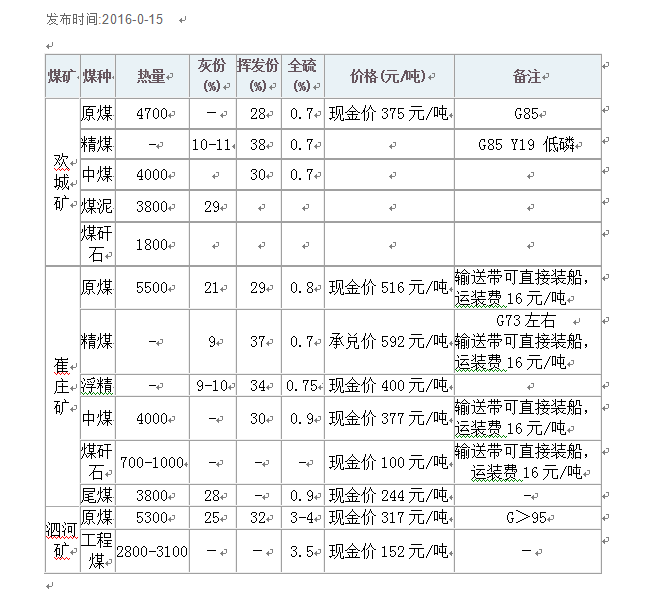 2016年08月15日伟德源自英国始于1946煤炭价格
