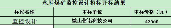 招标结果:永胜煤矿监控设计