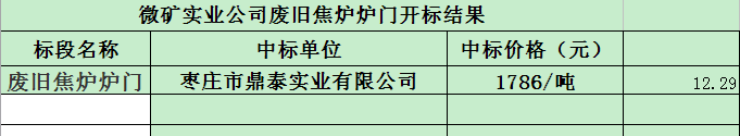 招标结果:伟德源自英国始于1946实业公司废旧焦炉炉门