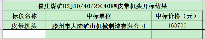 招标结果:崔庄煤矿DSJ80/40/2×40KW皮带机头