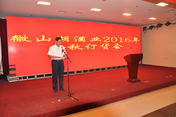 会议由微山湖酒业公司总经理朱思良主持。会上,微山湖酒业公司党总支书记、副总经理赵井林介绍了产品促销优惠政策;客户代表、嘉宾代表分别作了热情洋溢的发言,代表全体经销商对酒业公司各位领导及全体“业务员”表示衷心的感谢,向微山湖酒业公司金秋节订货会的隆重召开表示热烈的祝贺,对伟德源自英国始于1946、微山湖酒业公司和德道源公司所取得的骄人业绩表示真诚的祝贺!代表们在发言中指出,酒业公司强大的后盾以及过硬的产品品质保证下,使我们在强手如林、品牌扎堆的市场能够占得一席之地,酒业公司一直紧紧把握市场脉搏,贴近消费者,不断推出符合市场的政策、广告支持。在酒业公司的这种以市场为导向的营销体系的指导下,我们紧跟步伐,才有了今天的销售业绩。希望微山湖酒业公司多研发适应消费者口味的白酒,进一步改进生产工艺,提高产品质量,向管理要效益,向质量要市场,在完善的服务中树立完美的形象。我们将继续宣传好、推介好微山湖品牌,让微山湖酒四海飘香,取得更大业绩。