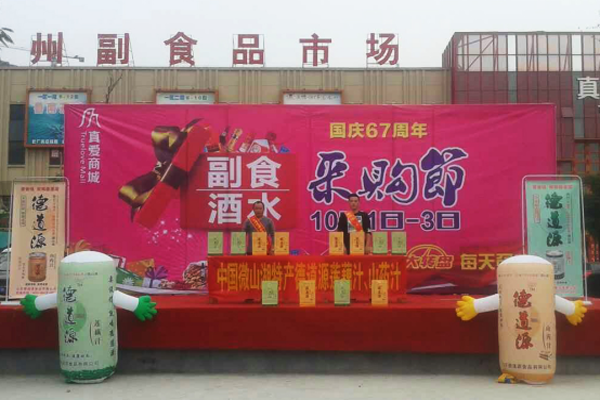 滕州真爱商城举办的黄金周采购节,喝莲藕汁大赛,转盘连连赢,舞台上下互动频频,活动现场异常火爆!德道源莲藕汁和山药汁荣获最佳采购饮料!