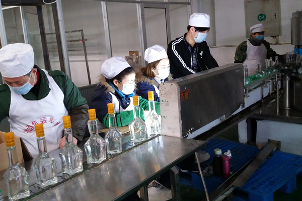 包装车间,机声隆隆,忙碌的身影构成了独特的繁忙景象。由于产品供不应求,车间人手紧缺,公司从各后勤单位、白酒车间抽调40余人,组成新的包装生产线,投入到紧张的灌装、包装生产中。由于是流水线作业,每一个环节都不能有丝毫怠慢,为了确保每一瓶酒都经的起市场的检验,流水线上的每一道工序都必须严格把控,每一个人都必须认真负责,大家身体力行,用实际行动践行着集团公司“遵章守纪、用心工作、乐于奉献”的企业核心价值观。