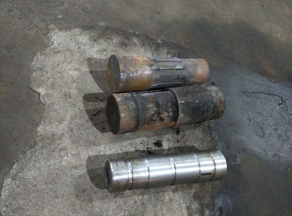 针对这一情况,矿领导决定让机修厂尝试加工煤机摇臂轴销组件。机修厂本着“只有放错位置的资源,没有完全的废物”的原则,将更换下来的旧轴销反复测量论证,决定利用报废的减速箱旧轴料加工轴销组件(每条轴加工费用约100元),经过机修厂人员精心加工,合理改进,新的轴销组件增强了自身韧性,增加了轴的抗拉强度,经试用效果良好,可有效地抗衡切割振动产生地扭力,同时保护了轴套,达到了预期效果。